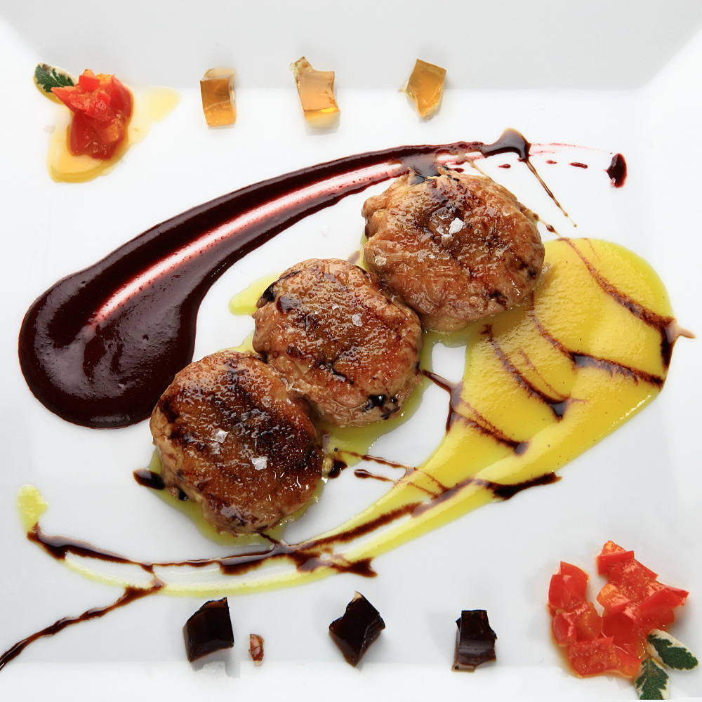 Mouse de foie con verduritas, frutos secos y cremoso de queso